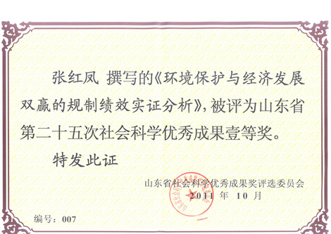 山东省第二十五次社会科学优秀成果奖评选结果日前揭晓,我院院长张红凤教授等的学术论文《环境保护与经济发展双赢的规制绩效实证分析》获得山东省第二十五次社会科学优秀成果奖一等奖,实现了suncitygroup太阳成集团成立10多年...