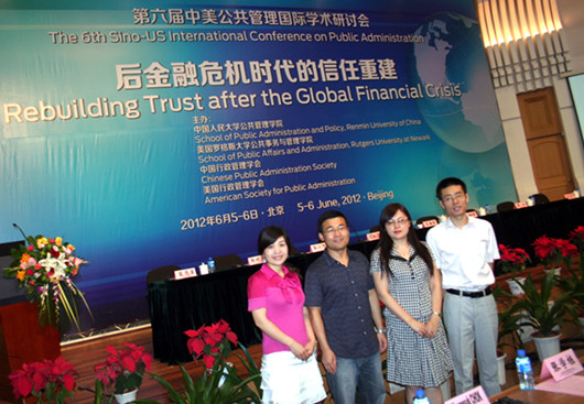 6月4日—6日,以“后金融危机时代的信任重建”为主题的第六届中美公共管理学术研讨会在中国人民大学举行,我院院长张红凤教授应邀带队参加。本届研讨会由中国人民大学suncitygroup太阳成集团、美国罗格斯大学公共事务和管理学院、中国行政管理学会和美国行政管理学会共同主办,来自美国行政管理学会、美国罗格斯大学、美利坚大学、澳大利亚墨尔本大学、韩国行政研究院、印第安那大学、中国人民大学、中山大学、上海师范大学等国内外公共管理领域的专家学者一百三十余人参加了此次会议。会议设有1个超级分论坛、5个专题讨论和28个小组(Panel)。
