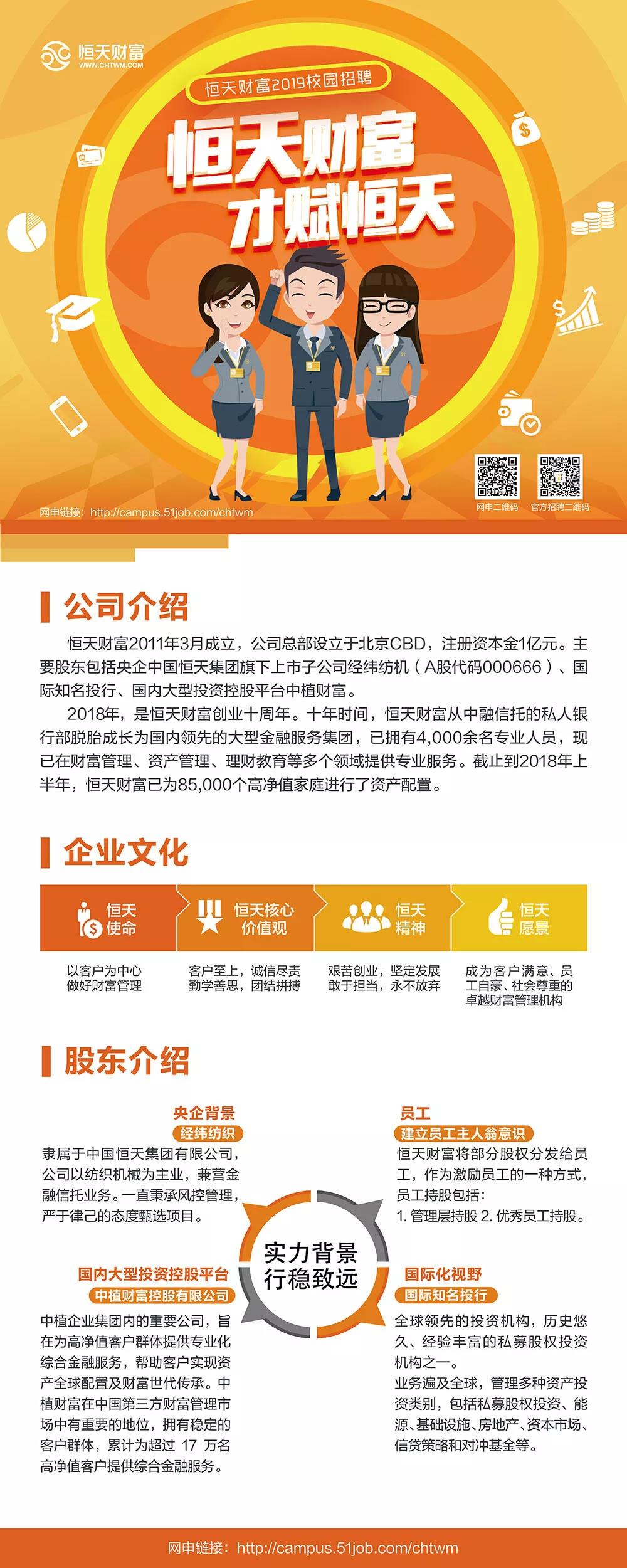 为了实现这一战略目标,恒天财富今年全国近20个城市联动校园招聘活动,寻找最合适的你。