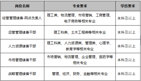 国家统招本科及以上学历,物流管理、市场营销、工商管理、电子商务等相关专业;