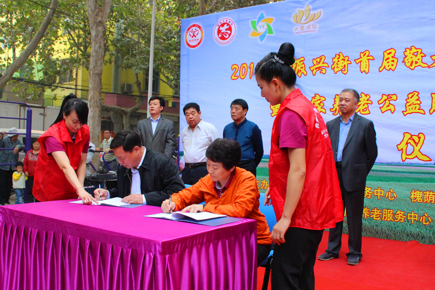 10月20日上午,我院与济南市槐荫区振兴街办事处、济南天思国际养老服务中心在“2015振兴街首届敬老节”上举行签约揭牌仪式,共建“劳动与社会保障研究暨专业人才培育基地”。
