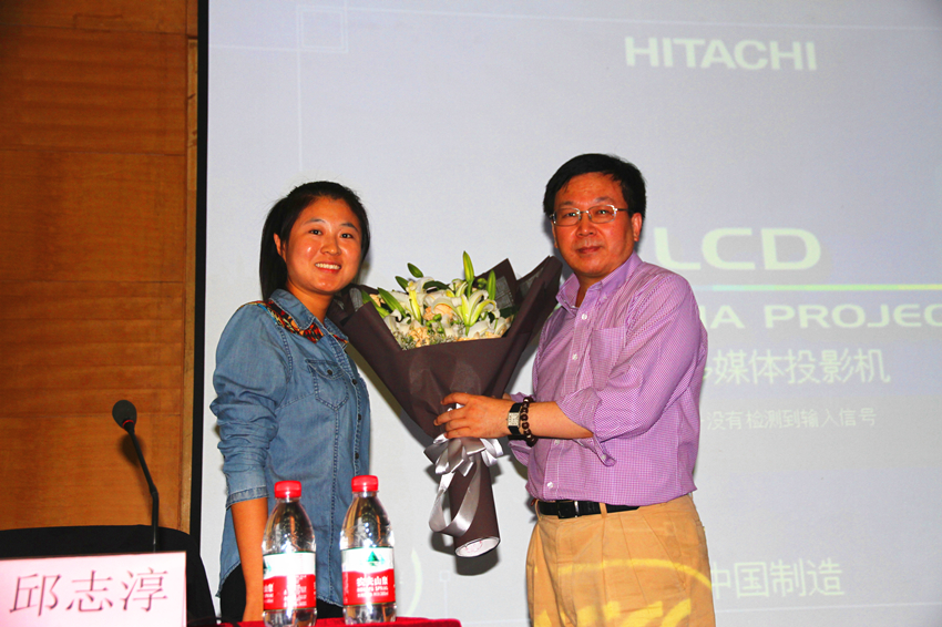 本次讲座正值中国古代教育先驱孔子的诞辰,2014级研究生张焕同学代表全院师生向邱志淳教授献花,以表示对邱教授节日的问候和真挚的感谢。