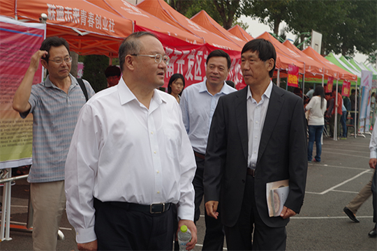9月11日中午12点,我院14级迎新工作在明水校区篮球如火如荼的展开。9月12日上午9点,我院党委书记郑磊,副院长董西明,党委副书记周炎莅临迎新现场视察、指导迎新工作,向学生会干部了解新生的报到与安排工作,并与休息区的家长亲切交谈,给新生家长答疑解惑,解决他们的后顾之忧。随后,学院领导来到新生宿舍,询问他们对生活环境的感受,记录了同学们提出的疑难和问题,提醒他们注意宿舍安全,鼓励他们尽快熟悉学校环境和宿舍生活。