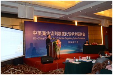 由北京明德劳动关系研究所主办,美国纽约市立大学穆尔菲劳动关系学院协办的“中美集体谈判制度比较学术研讨会”于2014年11月16日在北京市奥加饭店笼罩召开,我院路军副教授受邀出席研讨会,并发表主题演讲。