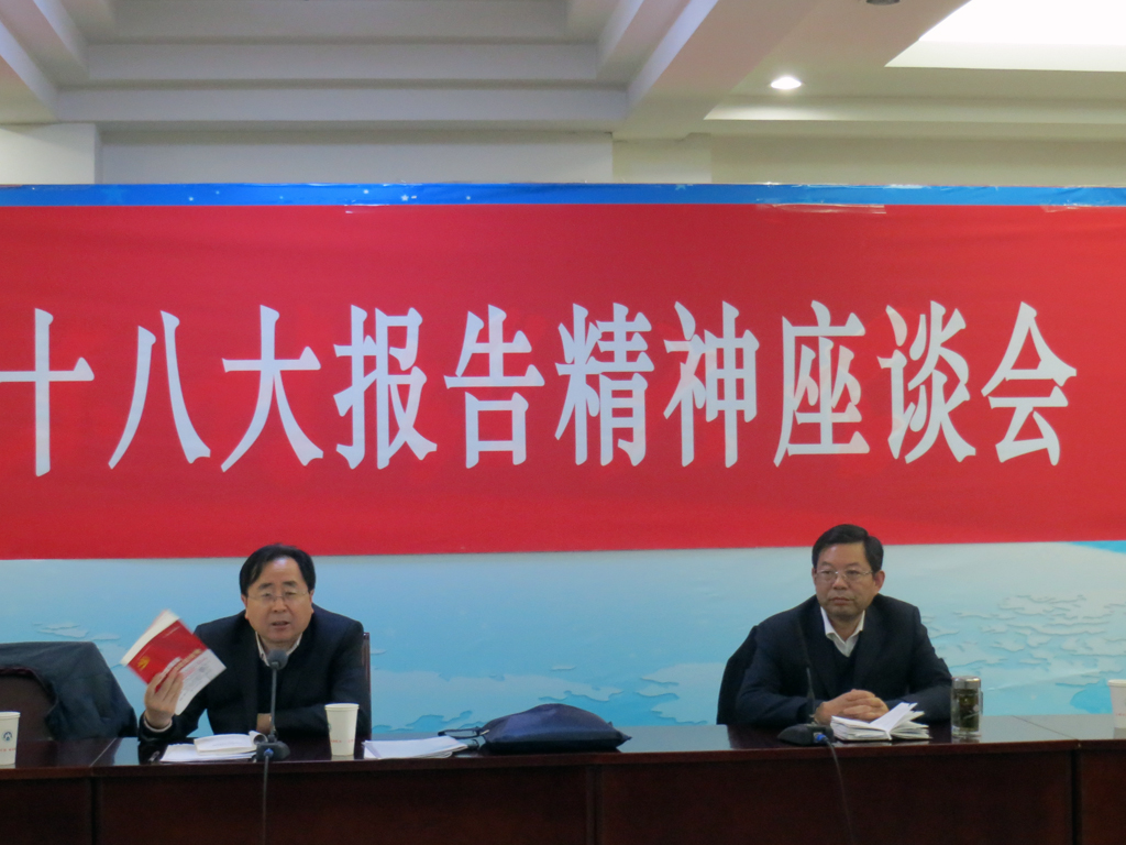 12月13日下午,山东省社会科学界联合会副主席周忠高应邀在我校燕山校区办公楼七楼会议室作了题为《学习党的十八大精神,加强社会科学研究》的报告。suncitygroup太阳成集团全体教师和学生党支部书记聆听了报告,王有志书记主持了报告会。