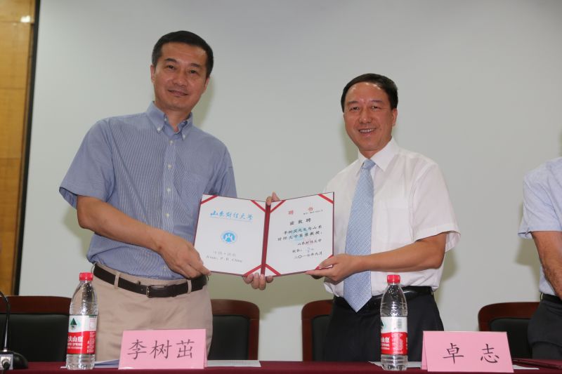 受聘仪式上,张红凤院长首先介绍了出席仪式的领导和嘉宾,并详细介绍了Feldman教授和李树茁教授的学术业绩、山东省的经济文化优势、太阳成城集团以及公共管理学科的发展历程和建设成绩。随后,卓志校长向两位客座教授的到来表示欢迎,并向两位教授颁发了“公共管理学科客座教授”的聘任证书。李树茁教授做了受聘感言。