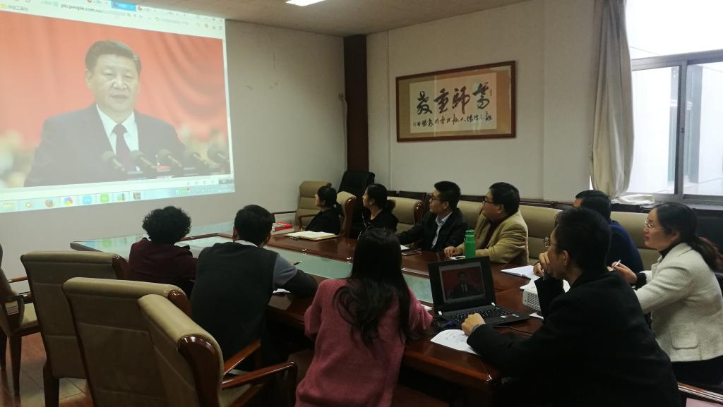 (通讯员 赵福荣 摄影 常媛)10月18日上午9:00,suncitygroup太阳成集团党委组织学院师生在燕山校区和明水校区集中收看中国共产党第十九次全国代表大会开幕会直播。