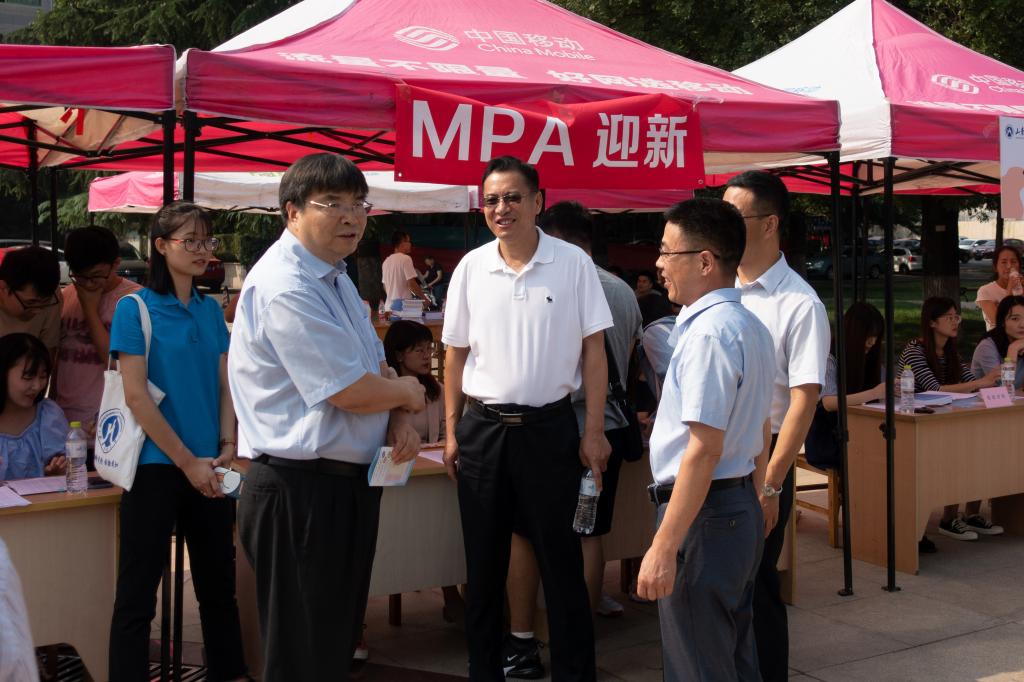 迎新期间,校长赵忠秀、校党委副书记赵友春、副校长綦好东、研究生院院长毕秀玲、学生处处长王剑等领导莅临迎新现场,检查指导迎新工作,对我院迎新工作做出高度评价,并对学院研究生寄予殷切希望。学院党委书记李国强、副书记周炎、副院长贾海彦、MPA中心副主任牟芳华也在迎新现场指导工作,强调要从细节着手,一切为新生着想,展现公管风采,并与新生及家长亲切交谈,解答各方面的疑问。整个迎新现场,井然有序,有条不紊。