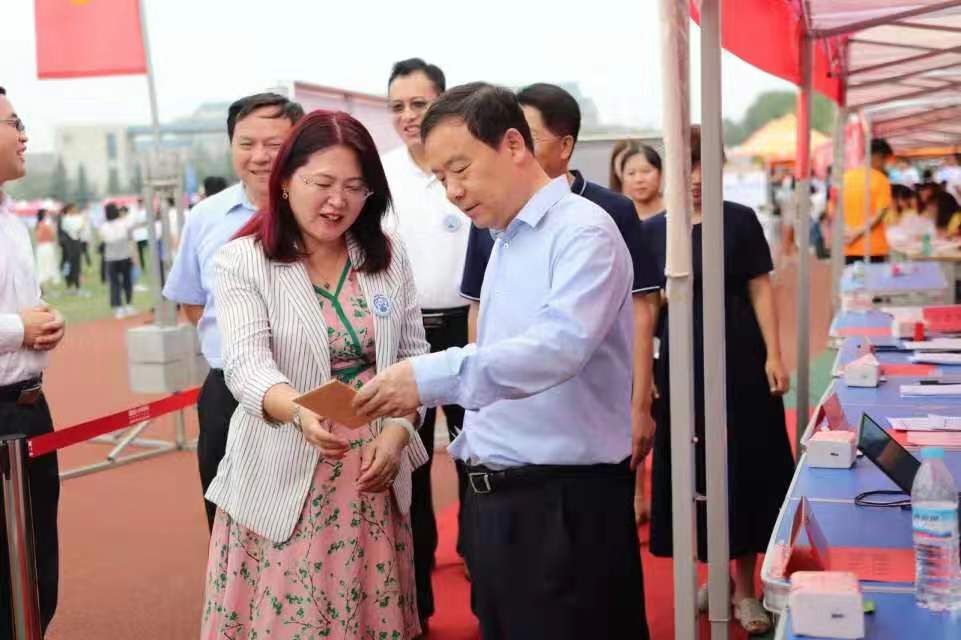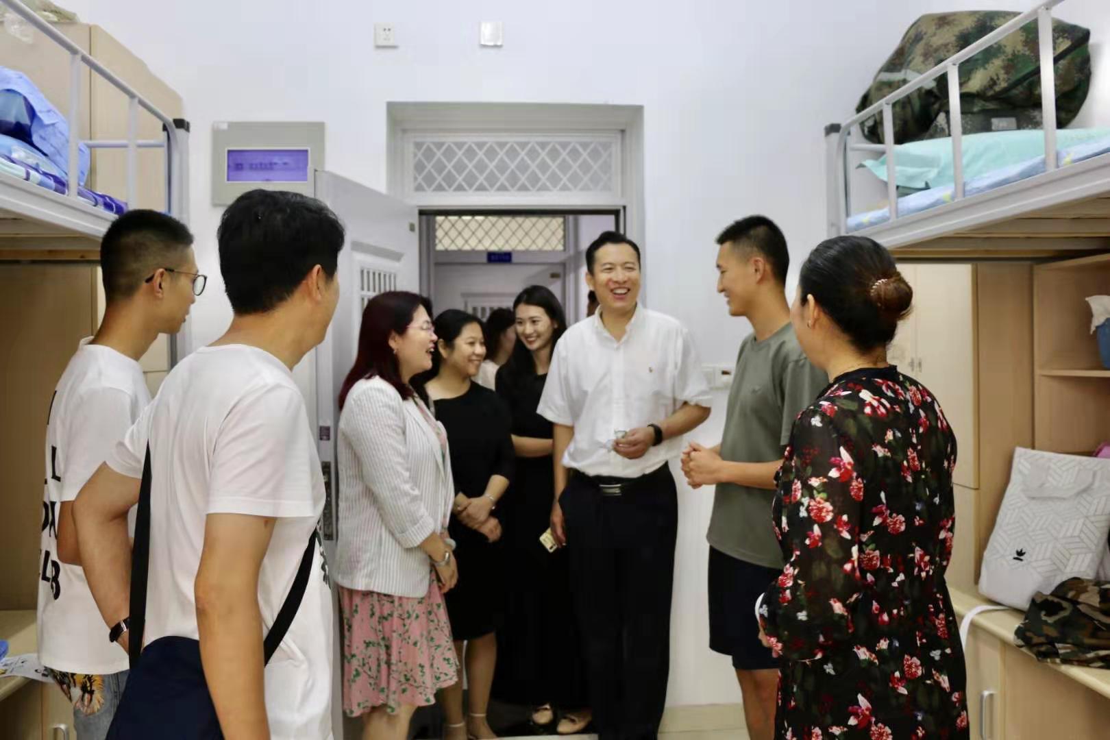 15日上午10时许,太阳成城集团党委书记王邵军,党委副书记车滨、赵友春,纪委书记姜波,副校长张书学等校领导以及各职能部门负责人亲切视察我院迎新工作,并给予了高度评价。我院院长张红凤、党委书记李国强、党委副书记吕晓燕与2019级辅导员王超老师前来指导迎新工作。看到各项工作有序进行,张红凤院长在接受采访时表示:“我感觉这次迎新活动组织的非常的到位,一些小的细节,让我体会到精益求精的态度。我们平时做事也要如此,要追求卓越,追求极致。”吕晓燕书记表扬了迎新现场秩序井然,会场布置简约活泼,这和学生志愿者周到的策划、细致的安排密切相关。
