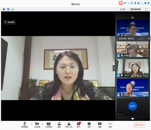 在分组讨论意见汇总环节中,张红凤院长首先代表所有的参会老师对MPA教指委在疫情期间创新性的组织线上培训会议表示感谢,并希望各位专家能来我院莅临指导;其次,张院长分别从价值观、授课内容、授课方法、资源共享等方面向大会汇报汇总了本组讨论所涉及到的主要问题并提出了建议,问题汇报主要涉及对学硕和MPA学生如何进行有区分度的教学;在政策过程中,特别是政策评估中如何避免决策者的错误价值取向;是否存在普适性的公共政策分析模型。建议部分主要涉及开放更多的案例教学资源以便各教学单位使用,MPA的课程教学可以更多的设置专题并聘请校外专家、学者、领域精英进行专题讲授。针对MPA教学中聘请校外专家及费用安排问题,张院长结合我院的实践探索尝试,建议可以课程为单位,给予每位授课教师邀请领域专家为MPA学员进行主题讲座报告的权限,使其可自主邀请校外专家,费用可由MPA中心补助或支付。张院长所汇总的问题与提出的建议也得到了教指委专家的积极回应和认可,认为具有较高的实践可行性,可结合不同学校的具体情况自主探索与实践。