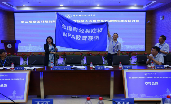 张红凤院长向大会介绍了我校MPA教育概况和办学特色,与参会高校重点研讨了财经类院校MPA的专业方向设置、培养方案的制定、导师队伍建设、课堂教学、案例教学、论文评审和答辩等。会议推选我校作为第三届全国财经类院校MPA教育联盟大会承办单位,并进行了会旗交接仪式。