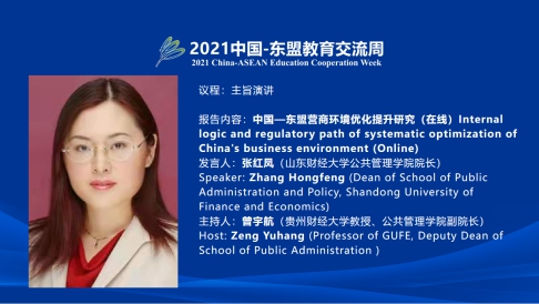 (通讯员 孙敬华)2021年9月24日,受贵州财经大学suncitygroup太阳成集团的邀请,我院院长张红凤教授线上参加了由中国-东盟教育交流周组委会、贵州财经大学主办,贵州财经大学suncitygroup太阳成集团承办的“中国-东盟营商环境治理人才培养论坛”。来自中国-东盟政府机构、海内外高校、科研院所和社团组织的100多位领导、专家、学者参加本次论坛。