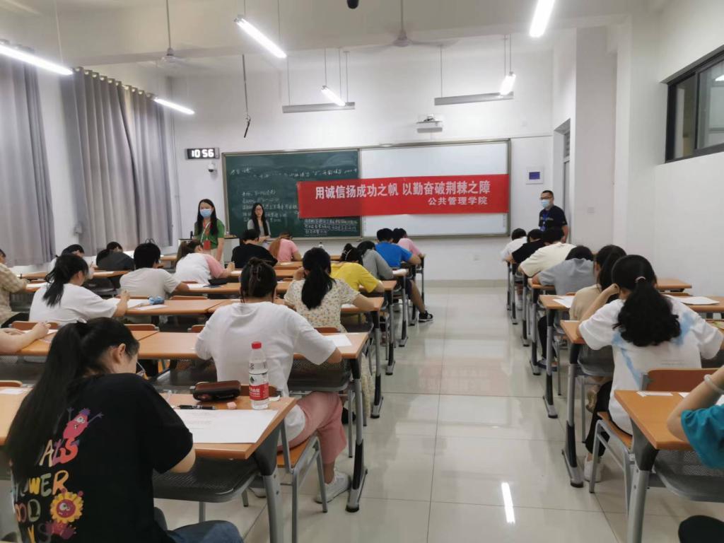 为进一步加强考试管理、构建良好教学秩序,巩固学风考风建设成果,学院严格按照学校要求,高度重视、认真组织本次考试工作。考试前夕,学院向全体师生全面传达了学校关于考试的相关要求,严格考试纪律,严肃考风考纪,强调以考风促学风,对学生开展了考风考纪教育,全体学生签署了《诚信考试承诺书》。