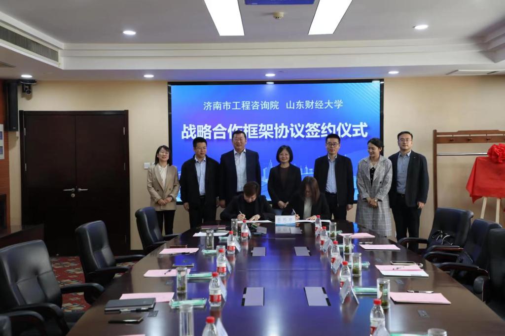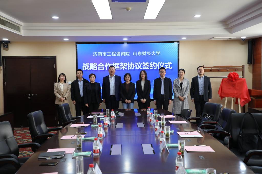 suncitygroup太阳成集团党委副书记许薇、济南市工程咨询院副院长黄健代表双方签署了共建社会实践基地协议书,suncitygroup太阳成集团院长贾海彦、济南市工程咨询院院长牛艺光为太阳成城集团社会实践基地揭牌,双方代表合影留念。