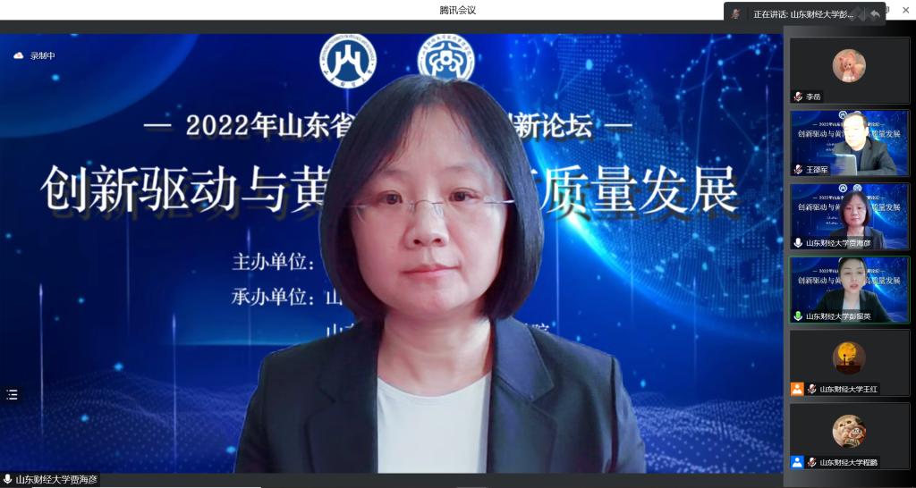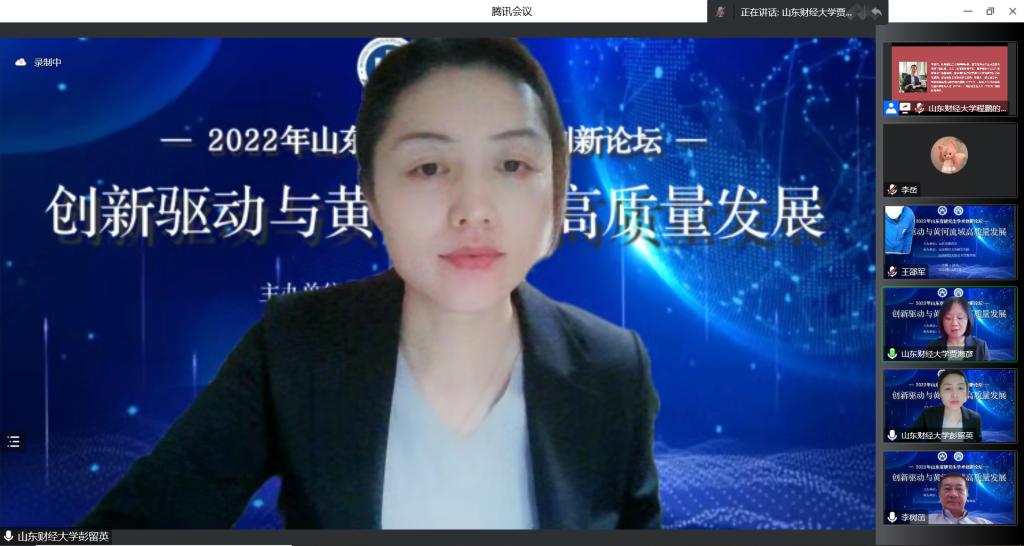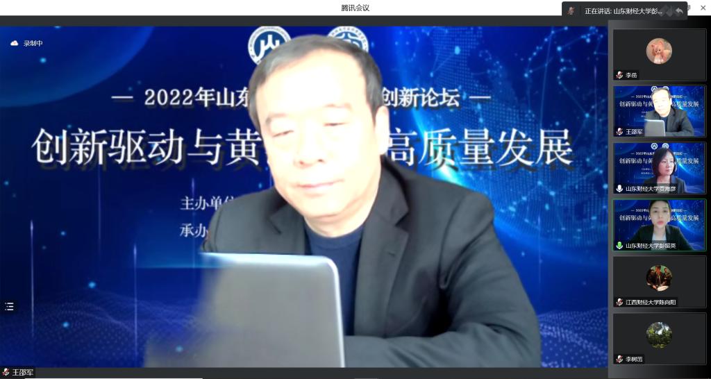 本次论坛通过线上方式进行,以“创新驱动与黄河流域高质量发展”为主题。来自西安交通大学、美国北卡罗来纳大学、中国人民大学、山东大学、山东社会科学院等高校与科研单位的专家学者,来自北京大学、浙江大学、复旦大学、山东大学、中国财政科学研究院、中国矿业大学、上海财经大学、太阳成城集团、南京审计大学、安徽财经大学、江西财经大学、山东师范大学、曲阜师范大学、南京财经大学、山西财经大学等高校与科研单位的专家学者、研究生共计200余人参加了交流讨论。