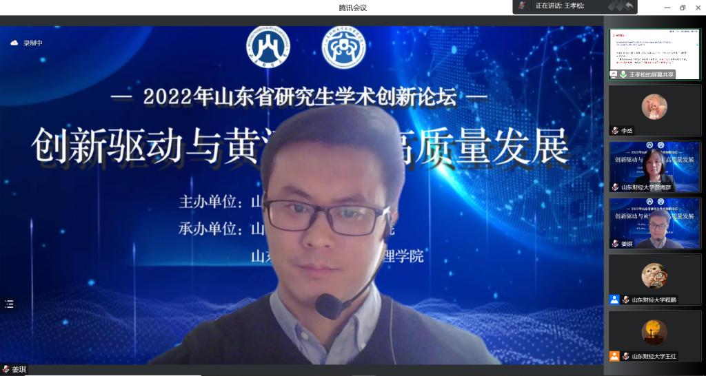 山东省研究生学术创新论坛是山东省研究生科研创新实践项目的组成部分之一。该项目面向服务国家和我省重大战略和经济社会发展需求,通过搭建研究生学习、交流、竞技平台,引导研究生培养单位深化人才培养模式改革,推动研究生教育优势资源共享,拓宽研究生学术视野,不断增强研究生使命感、责任感,切实提高研究生科研创新和实践创新能力,全面提升高层次人才培养质量。本次论坛的举办对实现公共管理、理论经济学、应用经济学、工商管理、法学等学科与国家黄河流域高质量发展战略更好地对接发挥将积极作用。
