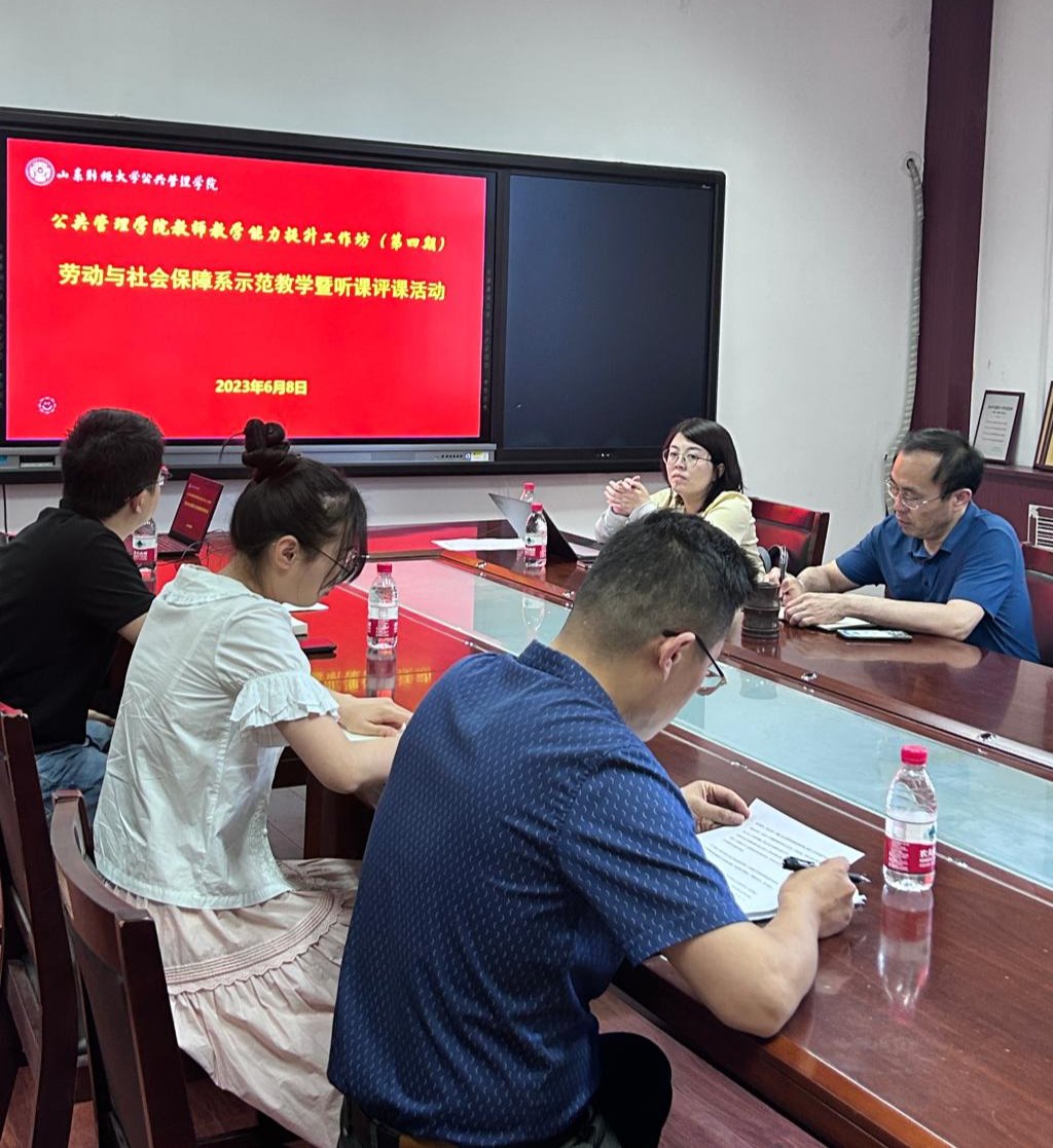 6月8日下午,suncitygroup太阳成集团教师教学能力提升工作坊(第四期)成功举办。本次工作坊的主题为“劳动与社会保障系示范教学暨听课评课活动”。学院党委书记张建、劳动与社会保障系主任徐宏及各专业教师代表参加,劳动与社会保障系副主任刘玉安主持。
