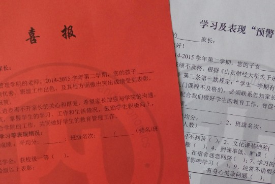 在每个学期初,学院将学习成绩优异并获得学校以上奖励的学生,和学习成绩不理想,挂科2门以上的学生,通过寄送“喜报”和“学业预警告知书”的两种方式,通报给学生家长,使家长及时掌握学生在校的学习表现情况,提出教育管理上的意见和建议,配合学院共同做好学生的教育管理。目前已分5批次寄送信函375封,仅本学期就寄送68封,另外,对于不及格科目较多以及存在心理问题的重点学生,辅导员还逐一与学生家长进行电话沟通。同时虚心征求家长对学生教育管理工作的意见和建议,逐步改进各项管理工作。