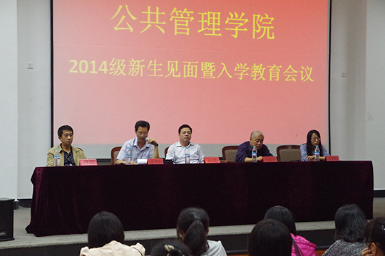 9月15日晚7点,我院2014级新生见面暨入学教育会议在明水校区5201举行。党委书记郑磊、副院长董西明、李国锋,党委副书记周炎,辅导员李昭娜及2014级全体新生出席此次会议。会议由周炎副书记主持。