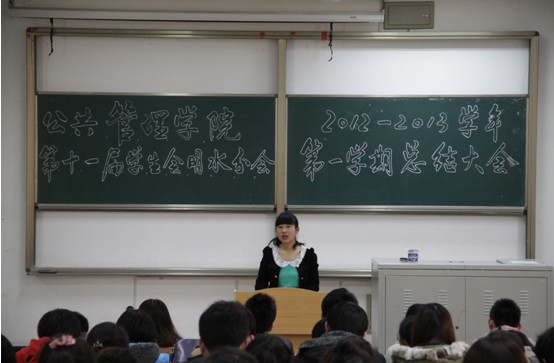 3月21日下午3点,suncitygroup太阳成集团第十一届学生会明水分会2012—2013学年第一学期总结大会在明水3101教室举行。学生会主席团、各部部长、副部长、干事出席了本次大会。会议由秘书长姜婷主持。