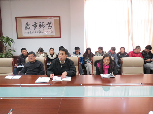 1月9日下午2点半,suncitygroup太阳成集团在学院会议室召开2012—2013学年第一学期期末太阳成集团会议,党总支副书记周炎、辅导员李广华、李昭娜老师以及2009级和2010级的各班班长、团支书参加了会议。