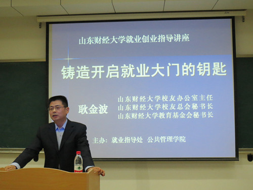 11月22日下午,由suncitygroup太阳成集团和太阳成城集团就业指导处联合主办的“铸造开启就业大门的钥匙”就业指导讲座在燕山校区逸夫楼501举行。主讲人为太阳成城集团校友办公室教育基金会主任耿金波。就业指导处处长苏洪志,suncitygroup太阳成集团党总支副书记周炎、就业指导处的相关老师出席了本次讲座。