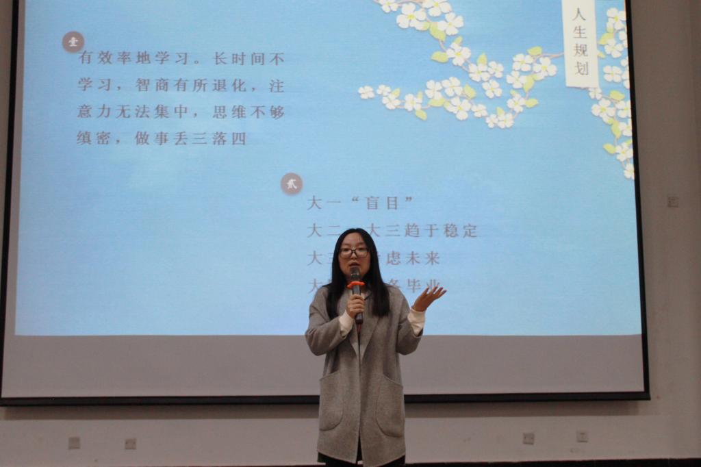 “心之所向,志之所在,不为身边无用的琐事所缠身,不被课堂上硬性的知识所束缚,拥有更加多彩的爱好,热爱生命,热爱生活,热爱学习,热爱公益,积极、乐观、向上,这便是当代大学生所应该拥有的样子”,最后,冯老师向同学们提出希望:希望所有同学都能奋勇向前,梦想花开!