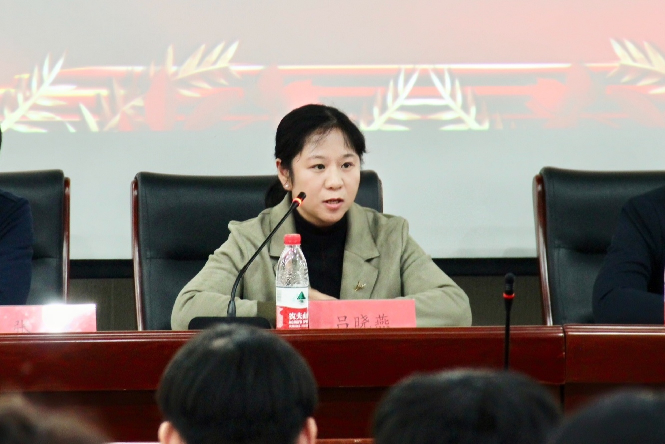 我院党委副书记吕晓燕书记发表讲话。她首先对第八届学生会的成立表示热烈的祝贺,对第七届学生会成员表示衷心的感谢,并强调了学生会存在的意义和责任。吕书记指出,学生会要发挥好师生间纽带和桥梁作用,团结一心,注重志愿者精神的培养和个人能力的提升,学生会干部要志存高远,更要严格要求自己。此外,吕书记还对学生会成员提出了殷切期望:要有坚定的理想信念,更要树立良好的政治意识、服务意识和责任意识;培养正确积极的政治意识形态;做好师生间的沟通工作,不驰于空想,不骛于虚声;做到工作学习两不放弃,发挥好参谋、组织、领导作用。最后,吕书记回顾了过去一年学生会的优秀工作成果,并展望了学生会美好的未来。