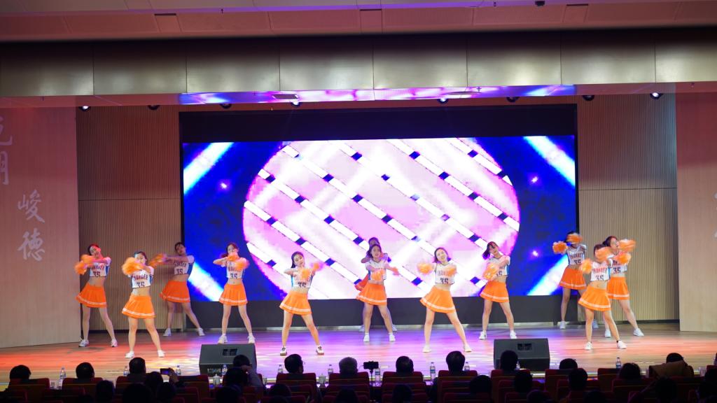 我院在本次颁奖典礼中呈现了精彩的啦啦操表演,演员们以精神饱满的面貌展现出了公管人卓越的一面。她们手中挥舞着绚丽的花球,脚下踏着轻快动感的节奏,淋漓尽致地诠释了新时代大学生的青春活力,表现出了“继往开来、奋勇前进”的啦啦操精神,更体现了公管人“大道为公,善治天下”的理念。