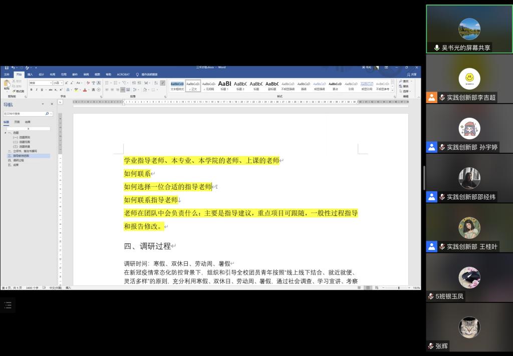 (通讯员 孙向阳)4月28日晚7点,我院实践创新部通过腾讯会议成功举办“三千计划”答疑会,会议由2021级辅导员张辉主持,城市管理教研室教师吴书光与实践创新部副部长李吉超、邵经纬主讲,我院2021级全体学生参加。