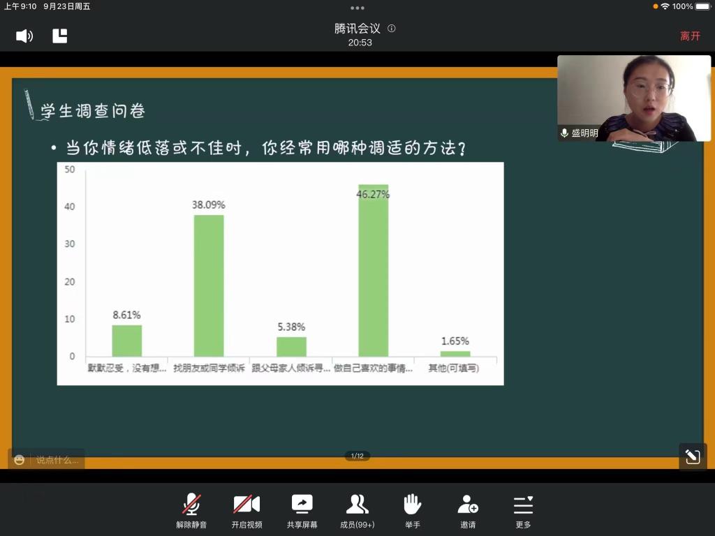 最后,盛老师表示,心理问题不可怕,可怕的是我们对它的污名化和病耻感。同时她也表示在疫情下,我们应更加的注重个人的心理健康,调整自身认知,理性看待疫情及学校疫情防控管理措施。做好个人防疫工作,注意身体状况,保护好自己。