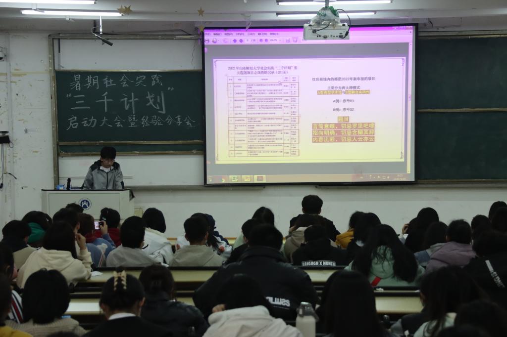 (通讯员 张心仪 摄影 田怡帆 嵇朋乐)为深入学习宣传贯彻党的二十大精神,进一步引导广大青年学生践行习近平新时代中国特色社会主义思想,在社会实践中受教育、长才干、作贡献,3月16日,我院“三千计划”启动会与经验交流会于圣井校区5-206教室顺利召开。此次会议由我院学生会实践创新部主持,2022级全体同学参加。
