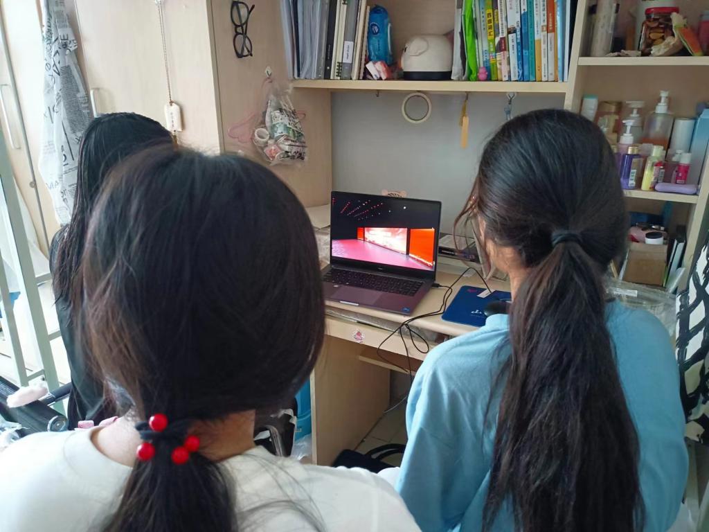 随后,大屏幕出现一名和蔼老人的照片,她名叫苗晓红,1956年12月加入中国共产党,是新中国第二批空军女飞行员。在采访中,苗晓红提到,中国人要有志气,要有骨气,要有底气。党给了她钢铁翅膀,人民给了她钢铁翅膀,只要党和人民需要,随时待命起飞,飞向祖国人民最需要的地方。苗晓红老人铿锵有力的发言使得在座收看直播的各位同学热血沸腾,不禁响起阵阵掌声。