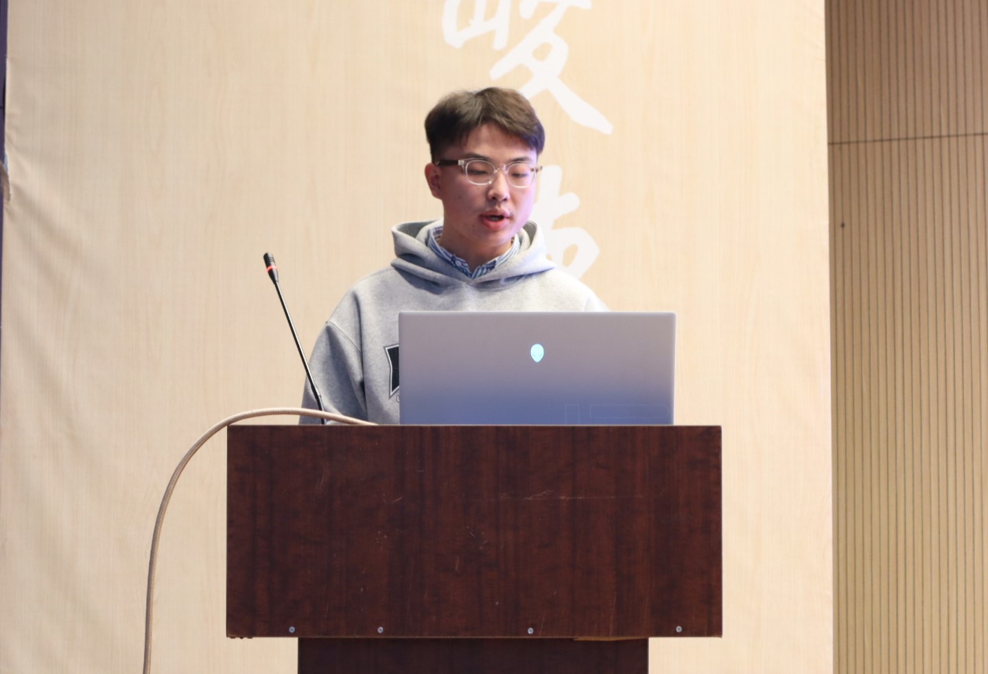 2022级行政管理1班班长林大凯为大家带来了“奋楫笃行,臻于至善”的分享。他借用图片引申出“德才相依,谓之君子”,具备责任、仁厚、坚韧、正义的良好品德是每位同学的必备品质。在日常生活中培养爱好,使自己在班委工作和学习生活间保持平和稳定的心态。