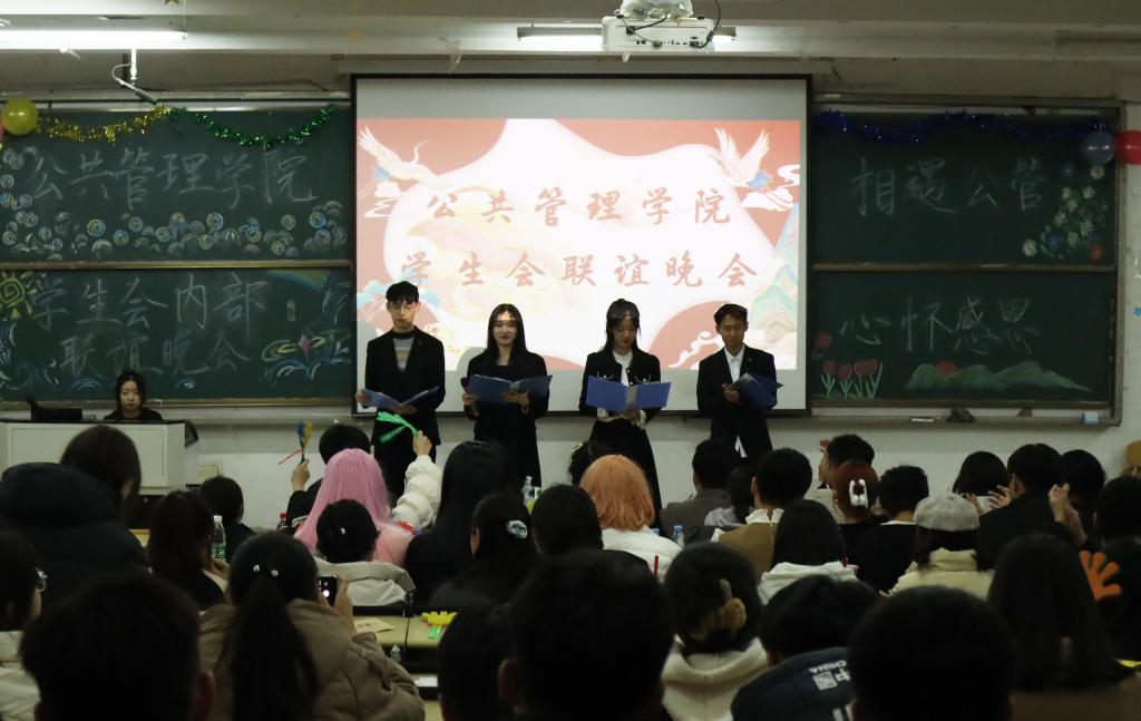 (通讯员 张敏 摄影 刘珂瑜 何叶 王步霓)为了促进各部门之间的交流和互动,增强学生会的凝聚力和团队意识,11月23日晚,我院于圣井校区5–206教室举办第十二届学生会内部联谊晚会。该晚会由秘书处主持,学生会全体成员参与。