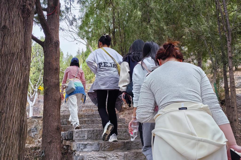 在佛慧山下,党支部书记崔悦在活动前为大家加油打气,“本次活动是一次意志品质的锤炼,希望大家在保证安全的前提下,拿出那股不服输的精神和勇气,勇于攀登,不甘落后,展示个人风采,发扬奋力拼搏的团队精神”。党员同志们沿着健康步道出发,踩台阶、穿树林,在青山绿水间感受大自然的独特魅力。在登山途中,大家或健步快走或稳步途行、或谈笑风生或相互加油,或三五成群站在至高处眺望远方,或拿起手机拍照合影留念,欢快的步伐成为佛慧山一道靓丽风景线。