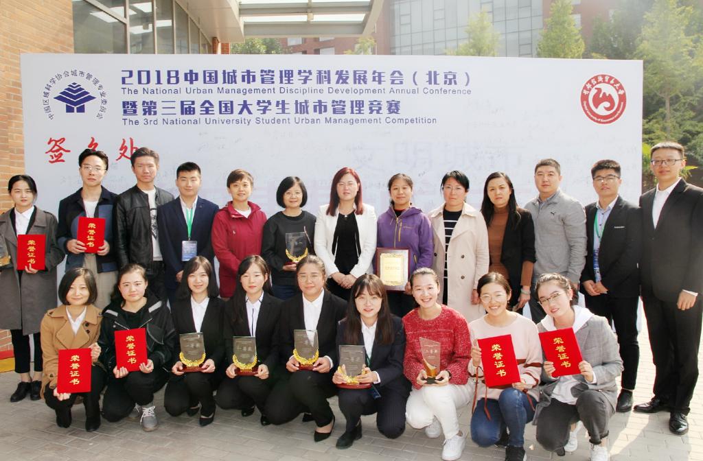 (通讯员 王恩娟 赵芃辉)十月金秋丹桂香,捷报频传喜气漾。10月12日,2018年中国城市管理学科发展年会暨第三届全国大学生城市管理竞赛在首都经贸大学落下帷幕。由我院组织的10支代表队的10件作品斩获竞赛研究生组一等奖1项、二等奖1项;本科生组一等奖4项、二等奖3项、三等奖1项。我校喜获第三届全国大学生城市管理竞赛优秀组织单位。