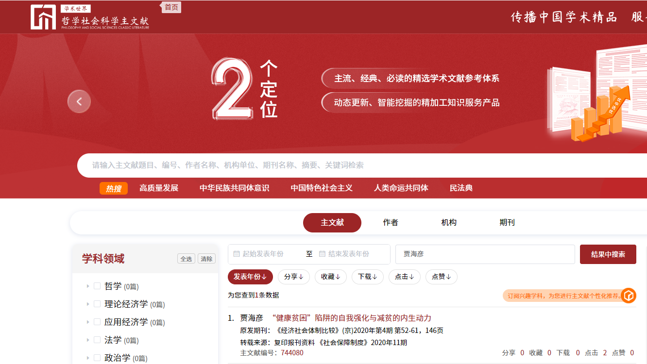 我院2篇论文入选哲学社会科学主文献平台