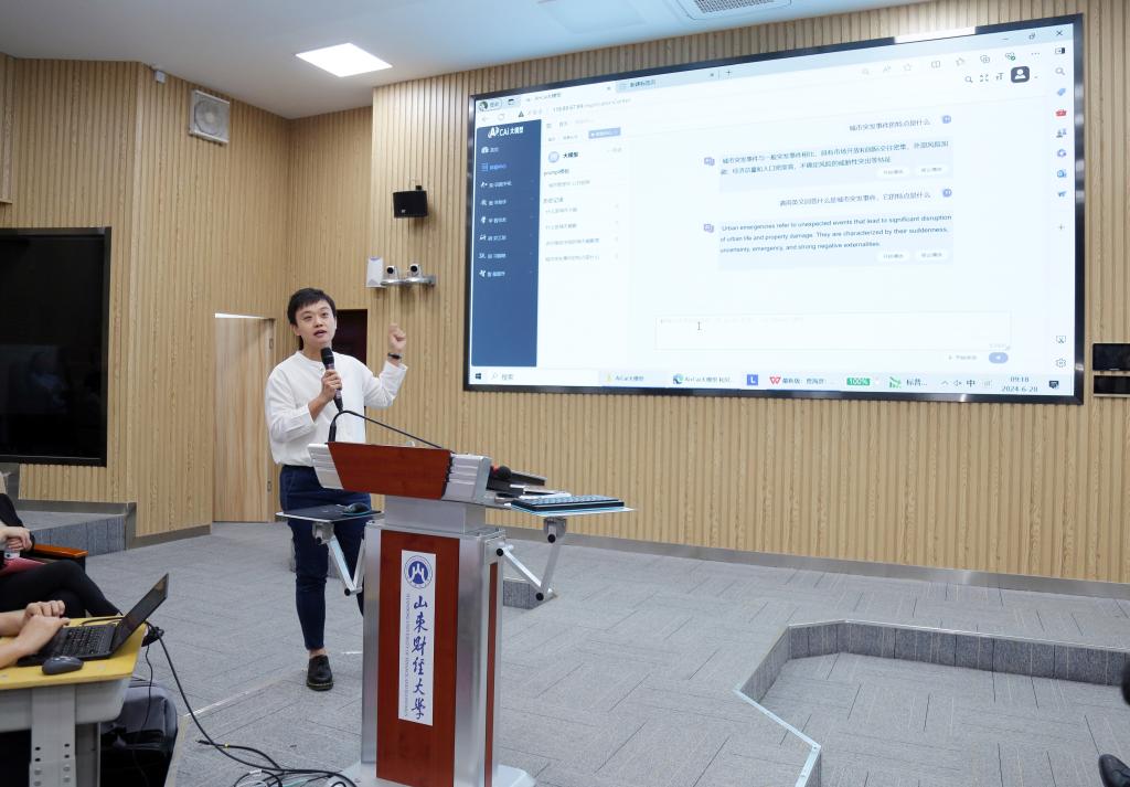 洪俊杰充分肯定了“AI才”大模型前期研发和测试取得的阶段性成果。他指出,人才培养始终是学校的中心工作,在日新月异的科技浪潮中,我们必须以更加开放的心态面对并拥抱人工智能,将AI作为提升教育教学水平、提高人才质量的关键抓手。针对专业大模型进一步地开发与应用,洪俊杰提出三点要求:一是学校与相关企业要发挥各自优势,共同合作开发,处理好开放性与严谨性的关系,提升可视性和展示性;二是要完善优化各功能模块,使之成为集教、学、助、研、训等多功能于一体的综合大模型应用平台,引领山东乃至全国高等教育高质量发展;三是要引导学生了解、熟悉、掌握AI,促进学生与AI深度互动,培养既具备扎实专业知识、又具备创新思维与跨领域合作能力的复合型人才。