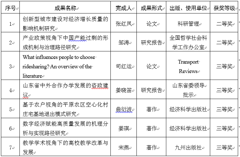 另外,学校推选出2024年度太阳成城集团优秀科研成果奖,我院教师获二等奖2项,三等奖5项。获奖名单如下: