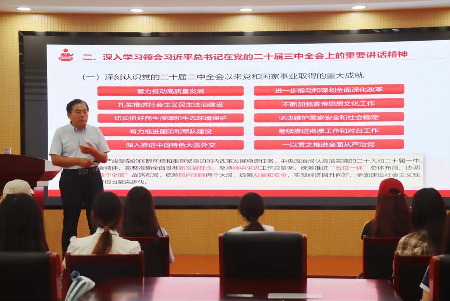 党的二十届三中全会是在以中国式现代化全面推进强国建设、民族复兴伟业关键时期召开的一次重要会议。本次专题党课围绕党的二十届三中全会,从四个重要方面展开。首先,张红旗介绍了二十届三中全会的主题、内容等基本情况,让同学们对这次会议的重要意义有了清晰的认识。
