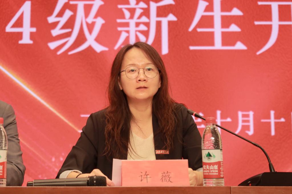 劳动与社会保障系教师孙敬华作为教师代表发言。孙敬华围绕“大学中如何应对未来挑战”展开发言,期望学生学会挖掘真正关键的问题,发挥合作精神,坚定终身学习理念,度过充实而有意义的大学生活。