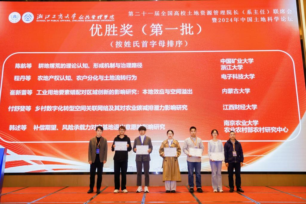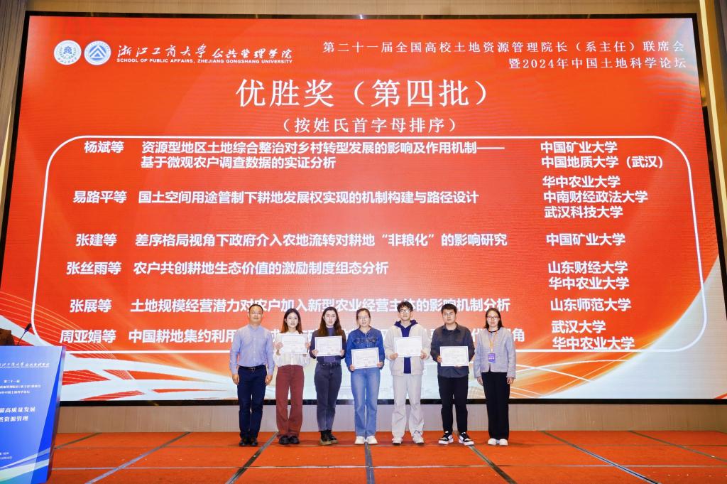 曲衍波副院长参加了土地资源管理专业建设交流会,张丝雨老师围绕提交的会议论文进行了分论坛的报告交流。据悉,本次会议共收到论文投稿175篇,获奖论文共38篇,我院张丝雨与王立业老师合作论文《农户共创耕地生态价值的激励制度组态分析》被评为大会优胜奖,曲衍波副院长作为第一批颁奖嘉宾为获奖论文颁奖。