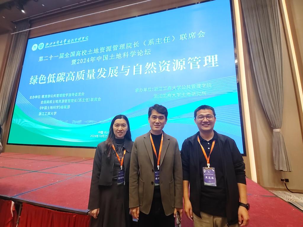 10月25日-27日,以“绿色低碳高质量发展与自然资源管理”为主题的第二十一届全国高校土地资源管理院长(系主任)联席会暨2024年中国土地科学论坛在浙江省杭州市举办,我院曲衍波副院长携城市与土地资源管理系张丝雨、王立业等教师参加会议。本次会议由教育部公共管理教学指导委员会、全国高校土地资源管理院长(系主任)联席会、《中国土地科学》编辑部、浙江工商大学主办,由浙江工商大学suncitygroup太阳成集团、浙江工商大学土地研究所承办。