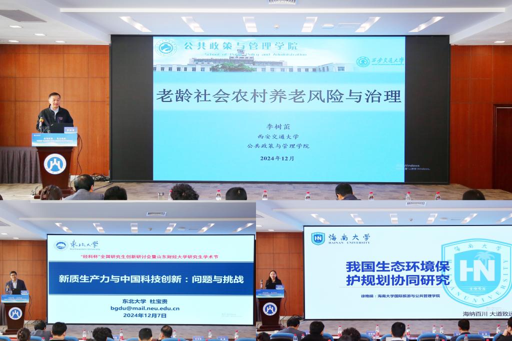 学术报告阶段,李树茁做《老龄社会农村养老风险与治理》专题报告,深入剖析老龄社会农村养老风险,提出农村养老风险治理方案。东北大学文法学院院长杜宝贵、海南大学国际旅游与suncitygroup太阳成集团院长徐艳晴分别做《新质生产力与中国科技创新:问题与挑战》《我国生态环境保护规划协同研究》主题报告。分会场讨论阶段,与会研究生通过专家讲座、论文宣讲与点评、专题研讨等形式进行充分交流学习。闭幕式阶段,经济、管理、综合及研究生会发展分论坛负责人进行了情况汇报,论文类、文献综述类及案例大赛类获奖研究生代表分别发言。