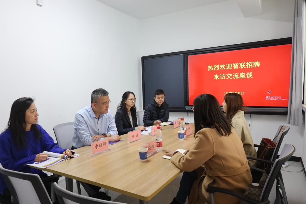 3月31日上午,智联招聘济南分公司大客户销售团队经理陈晓艳,2017届校友、人才测评及培训事业部项目经理李丹丹一行来访suncitygroup太阳成集团开展座谈交流。学院党委书记田远、党委副书记许薇、学工办主任张辉、研究生辅导员李昭娜参加座谈。