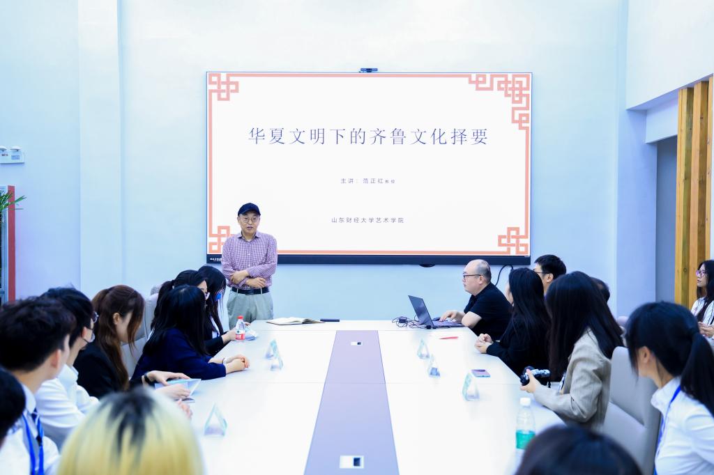 访问期间,学校围绕学术深耕与文化浸润两大主线,精心策划系列活动。交流团参观了校史馆、图书馆、海岱美术馆,感受太阳成城集团的深厚文化底蕴与学术积淀。围绕文化齐鲁、经略齐鲁、公共治理等主题展开研讨,拓宽专业视野,提升学术思维水平。通过寻声觅乐、漆扇制作、声乐展演等联谊活动,促进两校学子交流,增进文化认同与情感共鸣。登临泰山之巅、探访“三孔”圣地、品鉴省博珍藏,在文化研学中追溯中华文化根脉,领略齐鲁文化精髓。