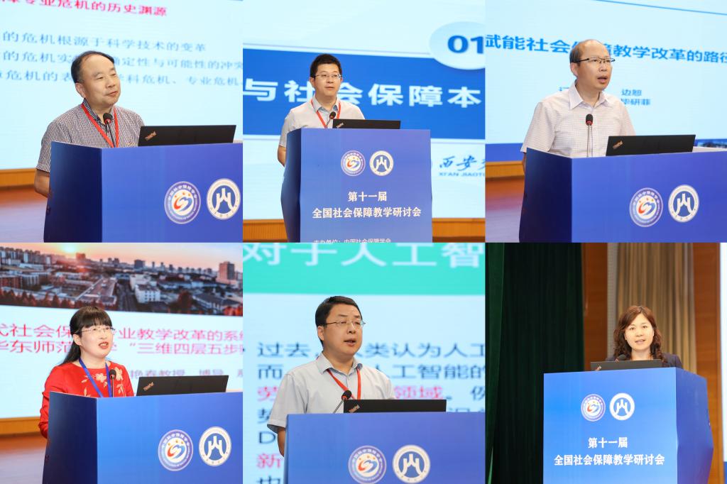 主旨报告环节由丁建定主持。厦门大学教授高和荣深入剖析社会保障专业面临危机,提出基于智能社会、长治久安、国家治理和新文科的知识创新路径。西安交通大学教授王立剑表示劳动与社会保障专业要厚基础、强数理、重实践,培养更多适应未来发展需要的高素质人才。辽宁大学教授边恕指出要加速数字要素融合渗透,创建人机协同课堂教学模式,推动社会保障学科发展和人才培养质量提升。华东师范大学教授曹艳春以华东师大“三维四层五步骤”改革实践为例,分享了人工智能时代社会保障专业教学改革的系统路径。浙江大学教授刘涛表示数智时代,知识观变革给传统教学带来挑战,教师需转变为学习的领导者和合作者,培养学生信息筛选能力。太阳成城集团教授徐宏提出要深化“社会保障+人工智能+大数据”交叉融合,打造财经特色高水平社会保障人才培养体系。