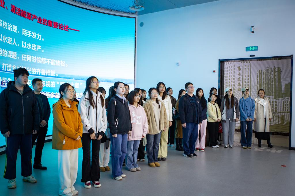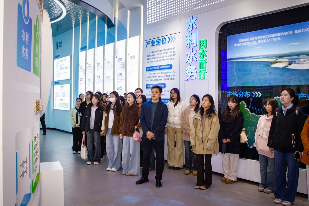 在集团工作人员的陪同下,师生代表一行首先参观了水发集团改革发展展厅,系统了解了集团在水利开发、现代农业、清洁能源等核心领域的发展历程、业务布局与创新成果。通过详实的图文资料与典型案例展示,同学们对集团企业文化、行业前沿动态以及国家相关战略部署有了更加直观深入的认知,为未来职业规划积累了宝贵的行业经验。