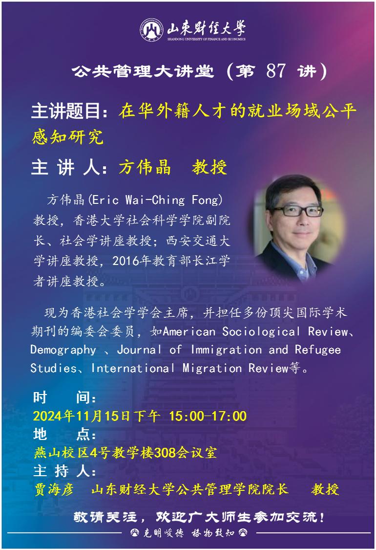 公共管理大讲堂(第87讲):在华外籍人才的就业场域公平感知研究